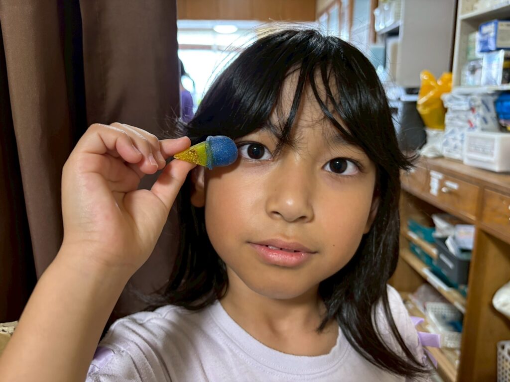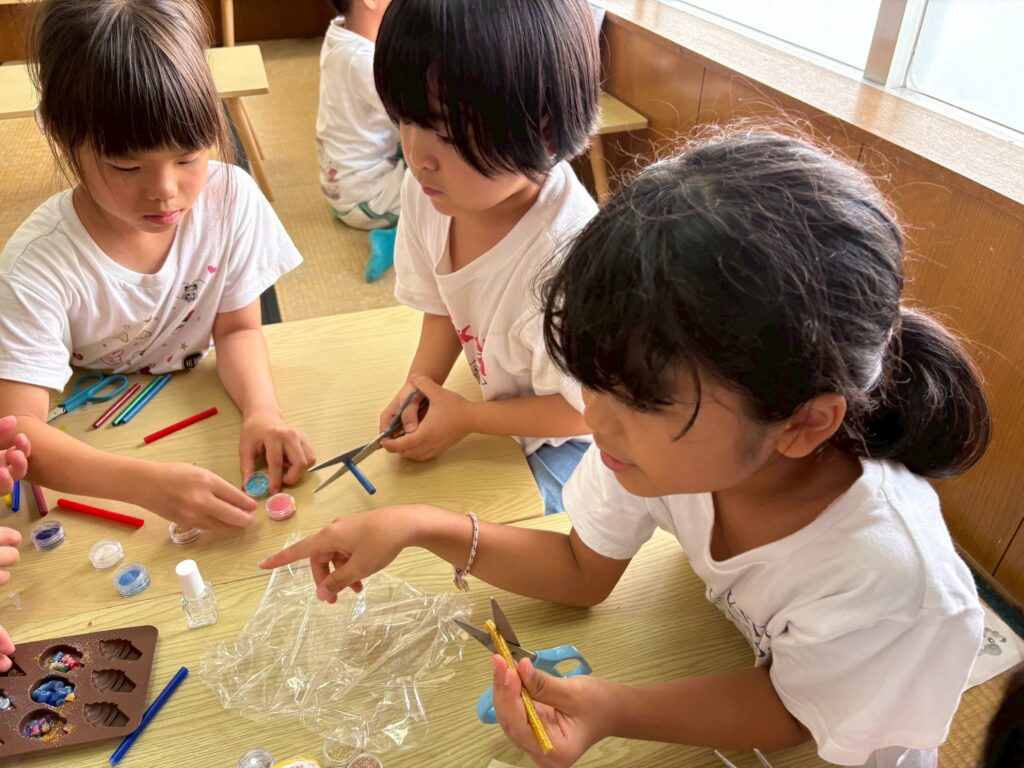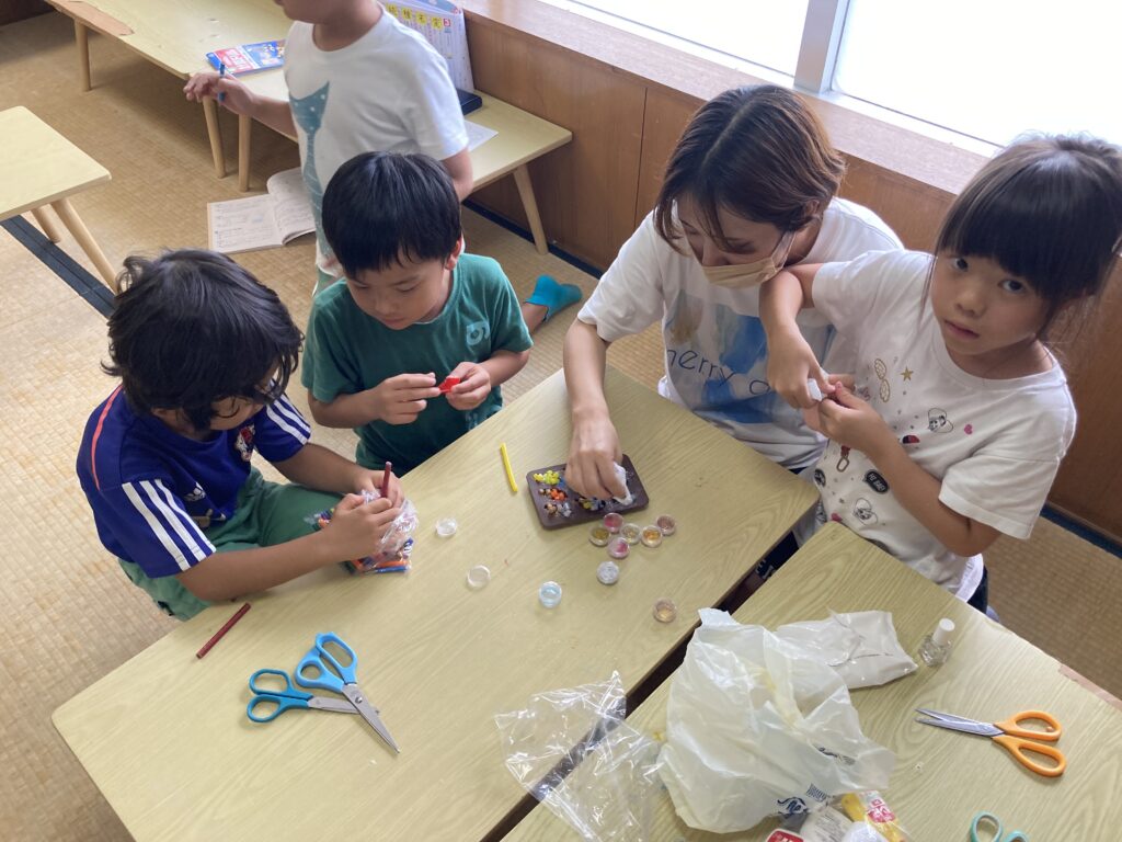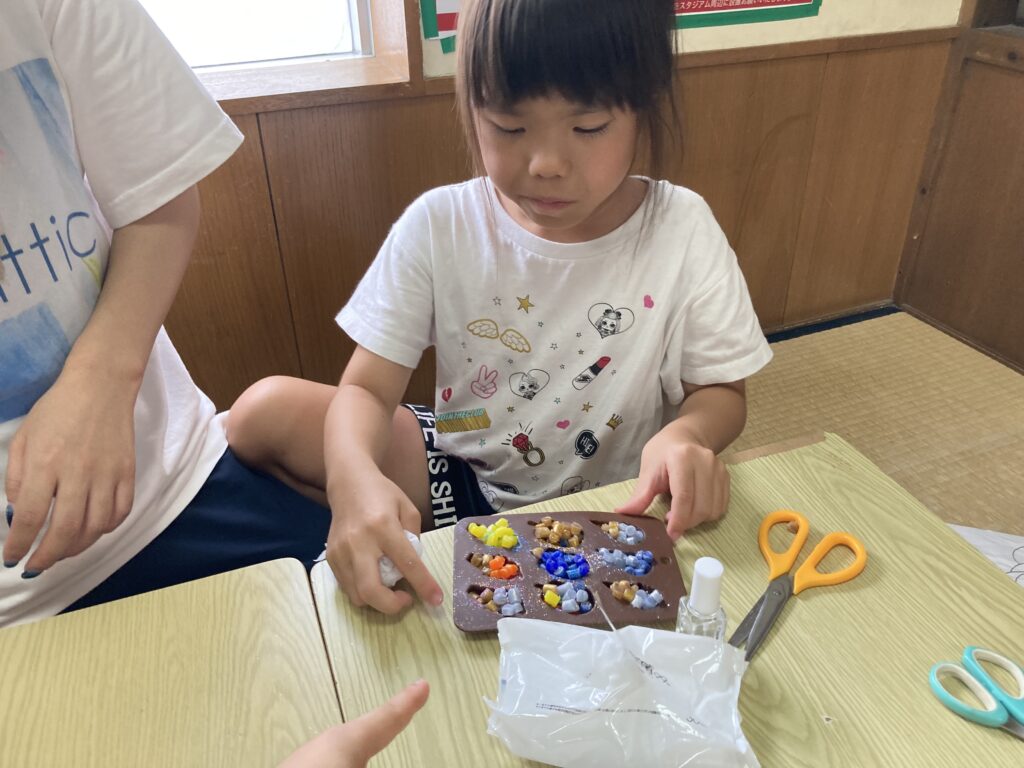 型に入れたあとは、先生が電子レンジで溶かし固めてくれました😊