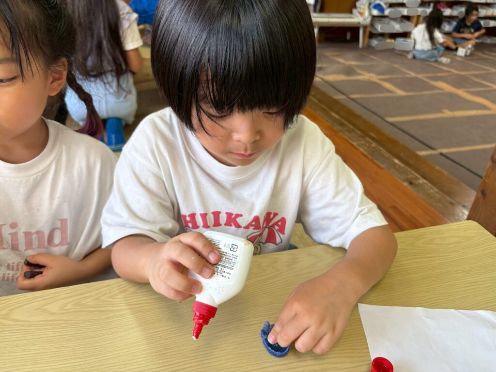 好きな色のグルースティックをはさみでカットして…✂️