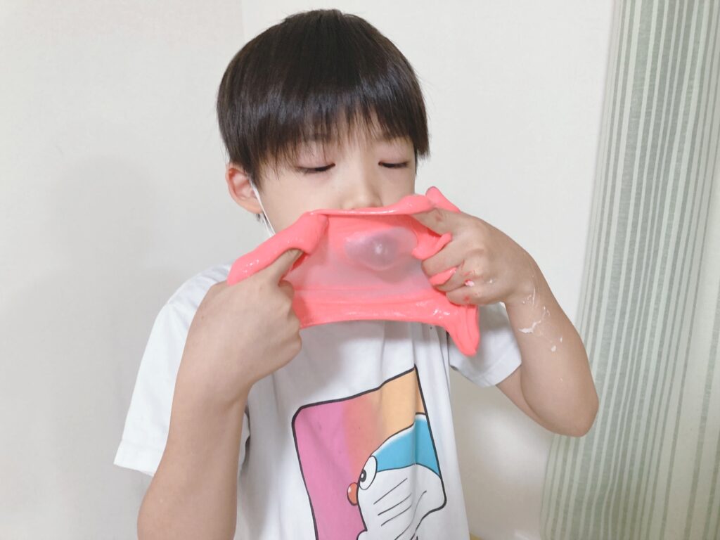 さすがにフーセンガムのようにはなりませんでしたが、それでも息で膨らみました😊