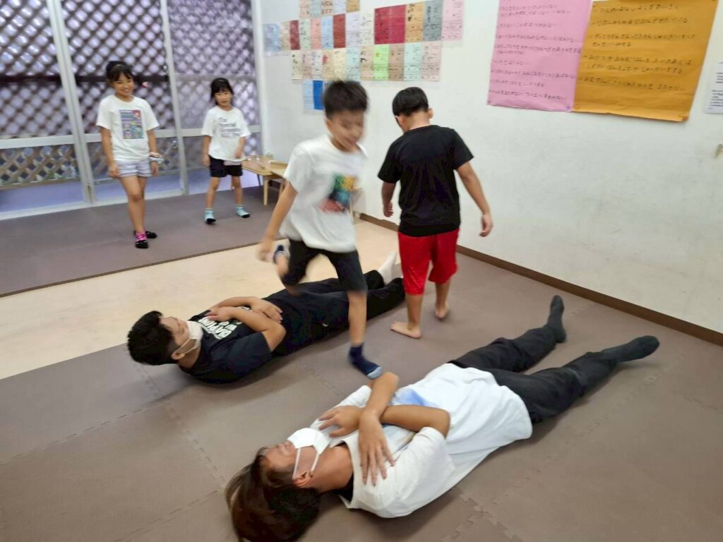 寝転んでいる先生達の「ひえぇぇぇ。絶対踏まないでよ!!」と言う声が聞こえてきます笑