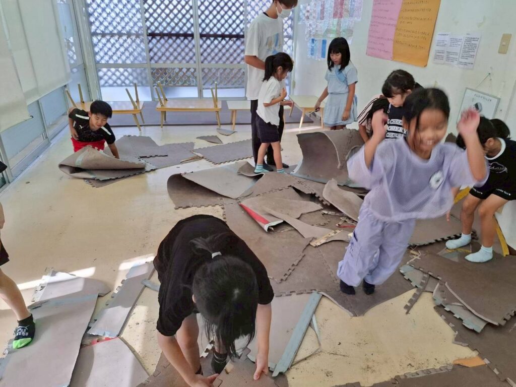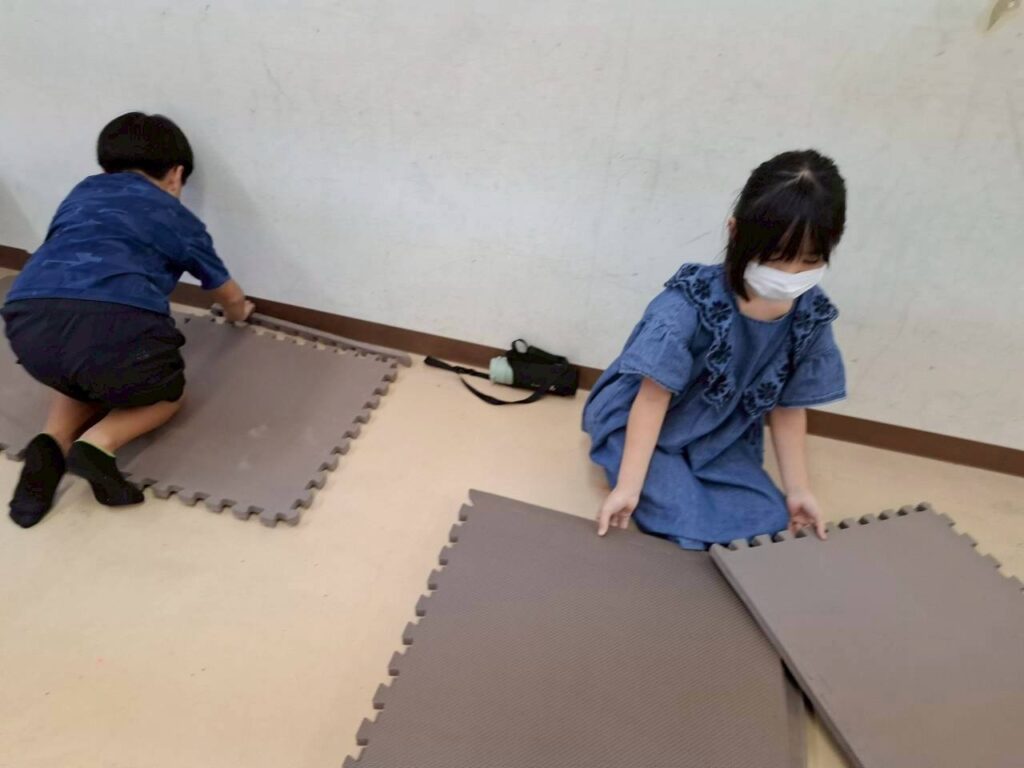 早速「マット貼るの一緒にやりたい−!」「みんなでお手伝いしよー!」と声が聞こえてきました!