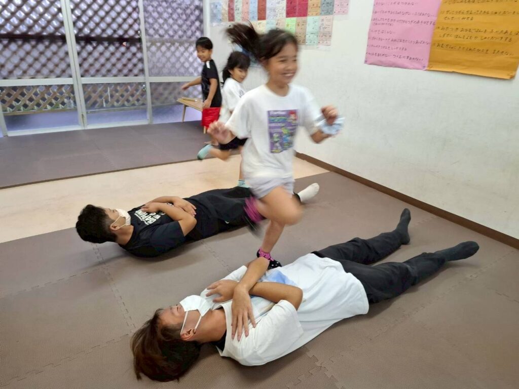 綺麗なマットだし体操でもして遊ぶのかな!?と思いきや・・・先生をジャンプして遊んでる!!😂