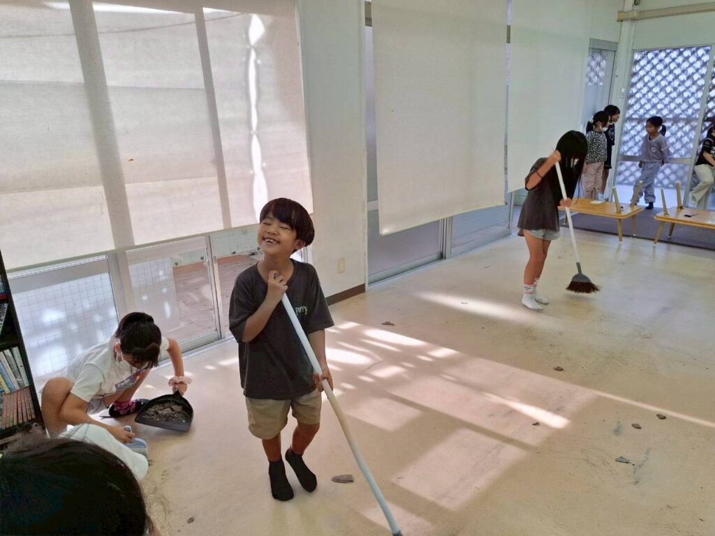 マットを剥いだところから埃が💦みんなに手伝ってもらってほうきと雑巾掛けまでしました!🧹大掃除です😅