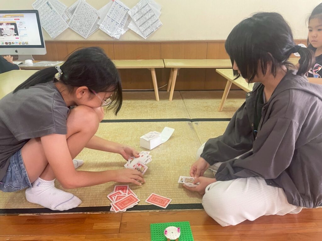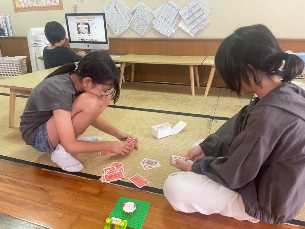 トランプで盛り上がっている女の子たち。どちらが勝ったのかな?🧐