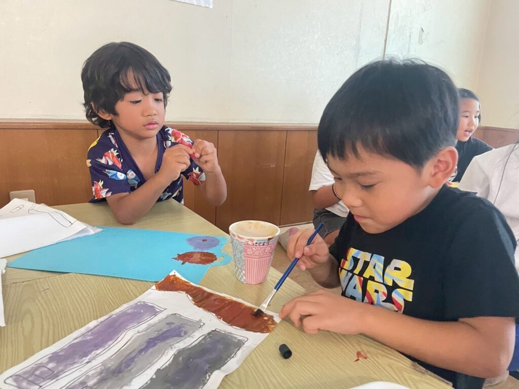 まずは絵の具を使って一人一枚好きな色で塗っていきます🎨