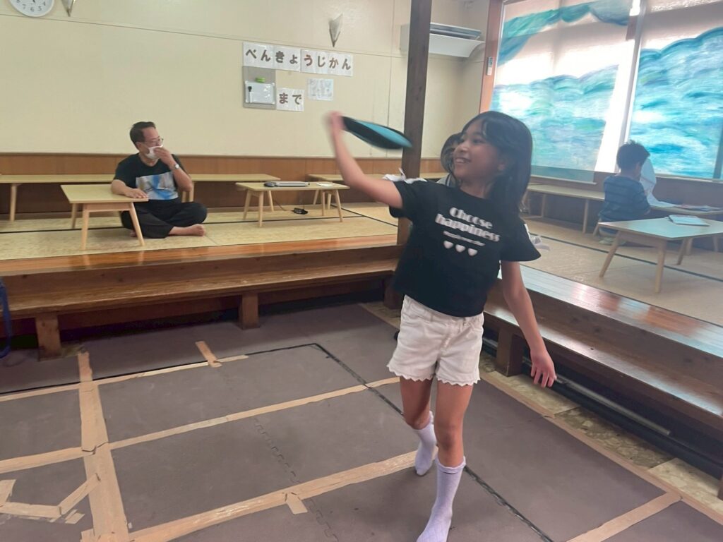 フリスビーの作戦会議中にカメラを向けるとピースしてくれました✌️