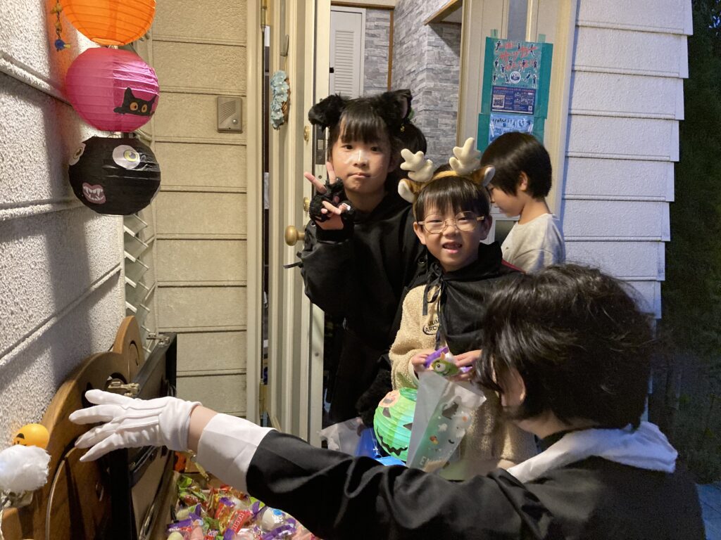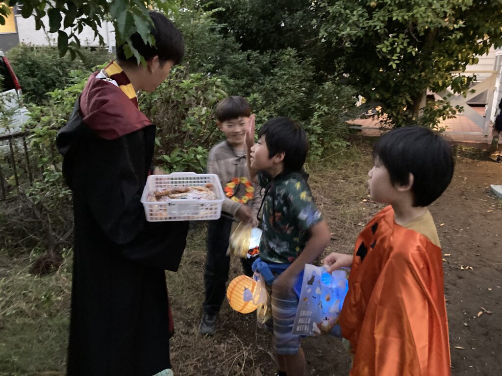各場所にいる先生のところへ行き、合言葉の「トリック・オア・トリート!」を元気に言うと、