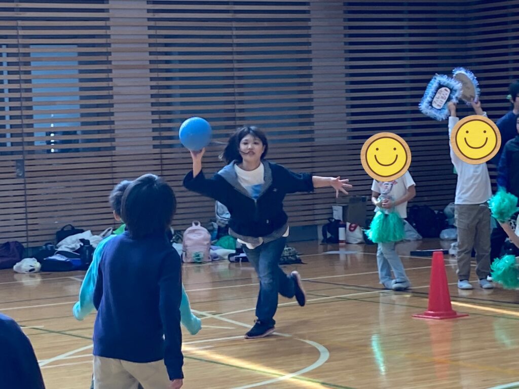 マッチ箱は、他のチームの先生たちにボールを当てられないよう逃げるタイプのドッチボールです!