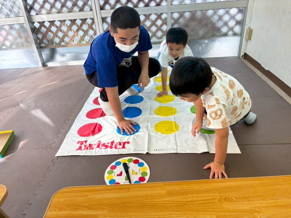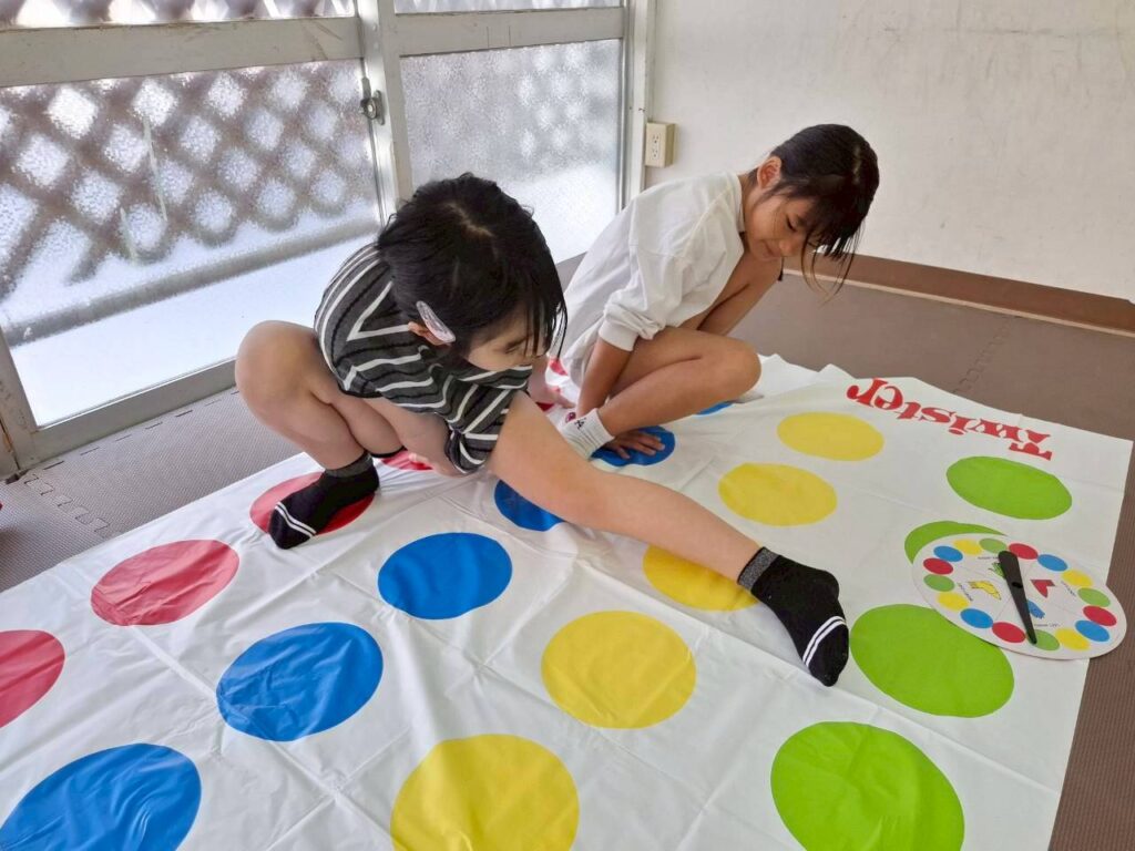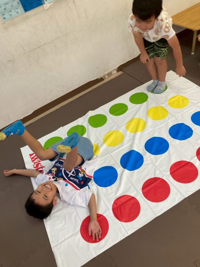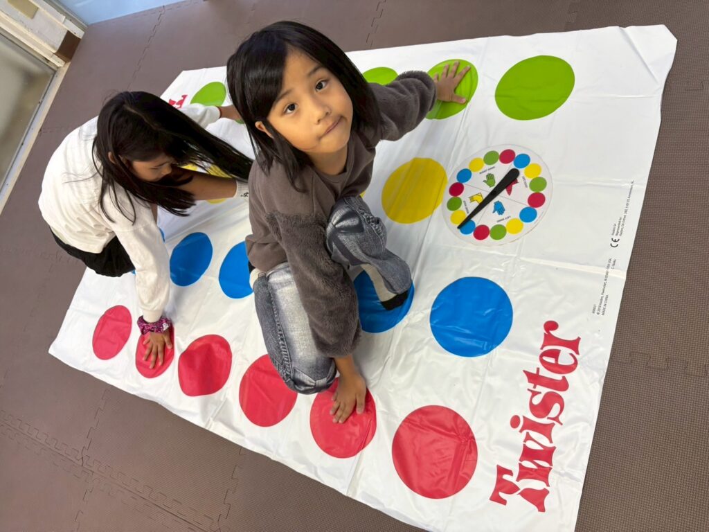 じゃーーーん!ツイスターゲーム♪みんな初めてのツイスターゲームに興味津々✨色んな子が一緒にやってくれました!