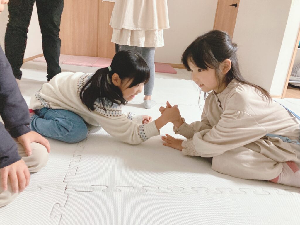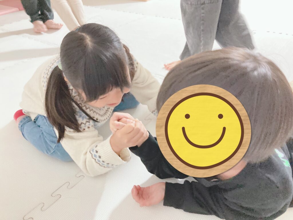 このゲームは協力し合わないとうまく掴むことが出来ないのですが、子ども達は声を掛け合いながら、上手に掴み積み重ねていきます。