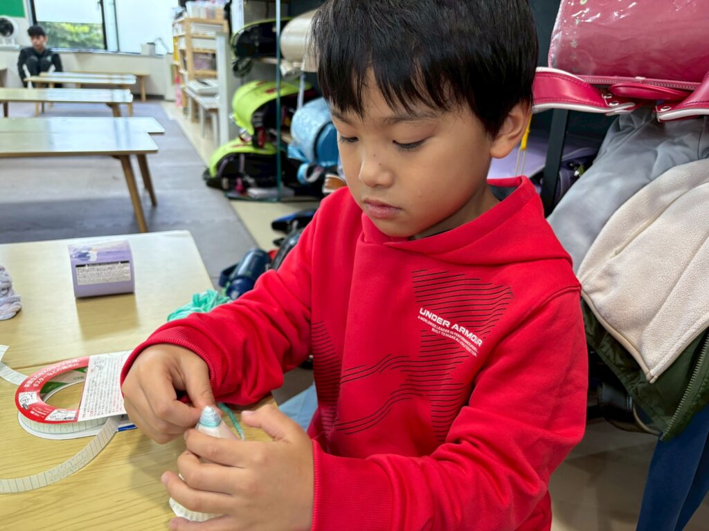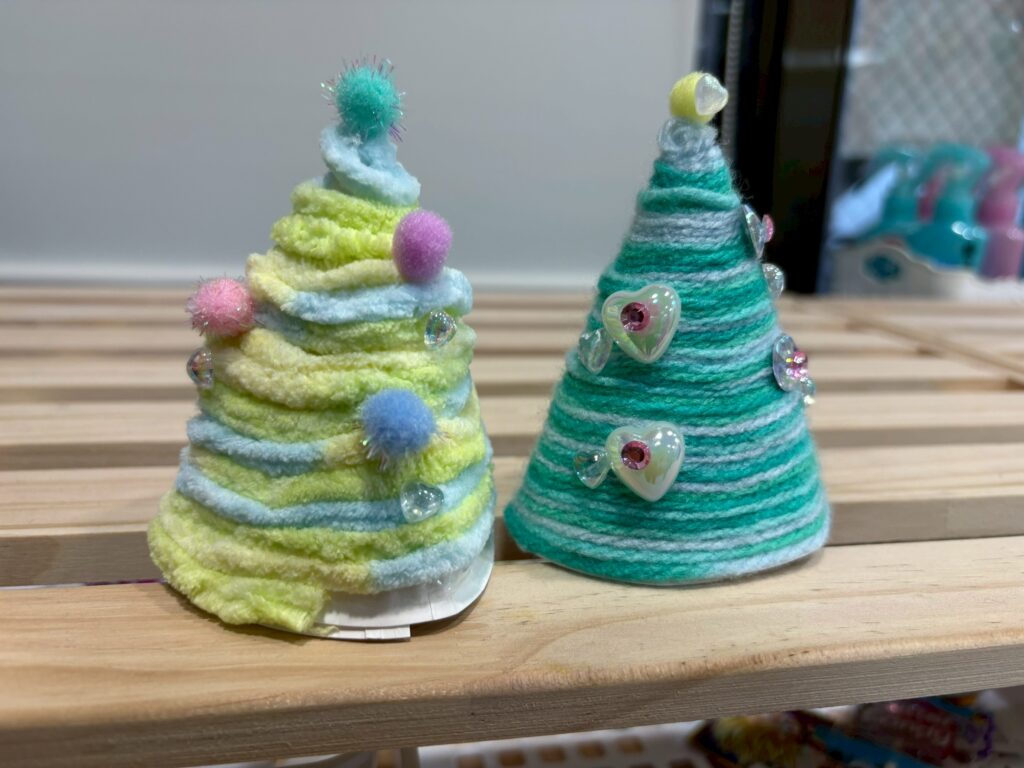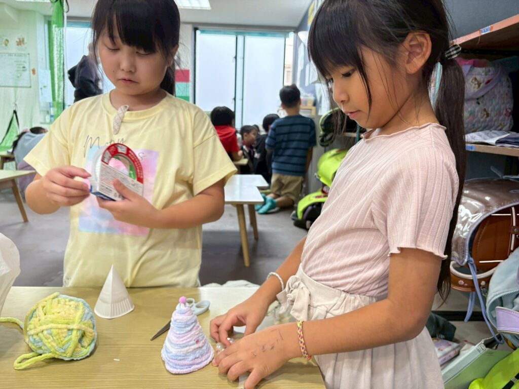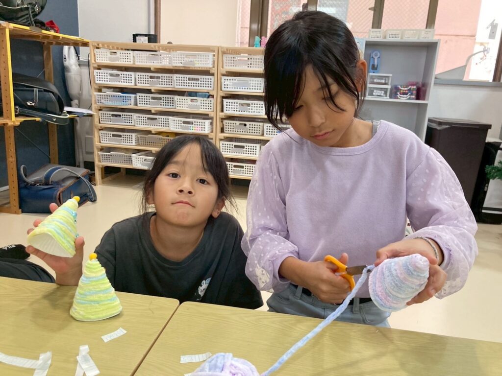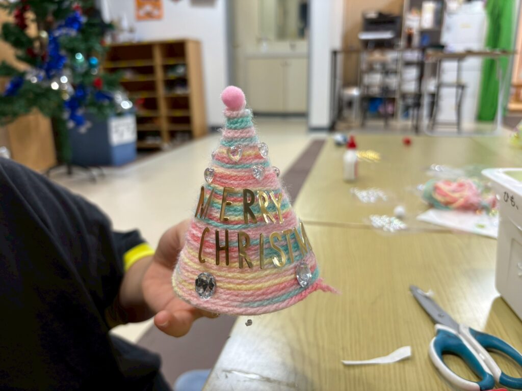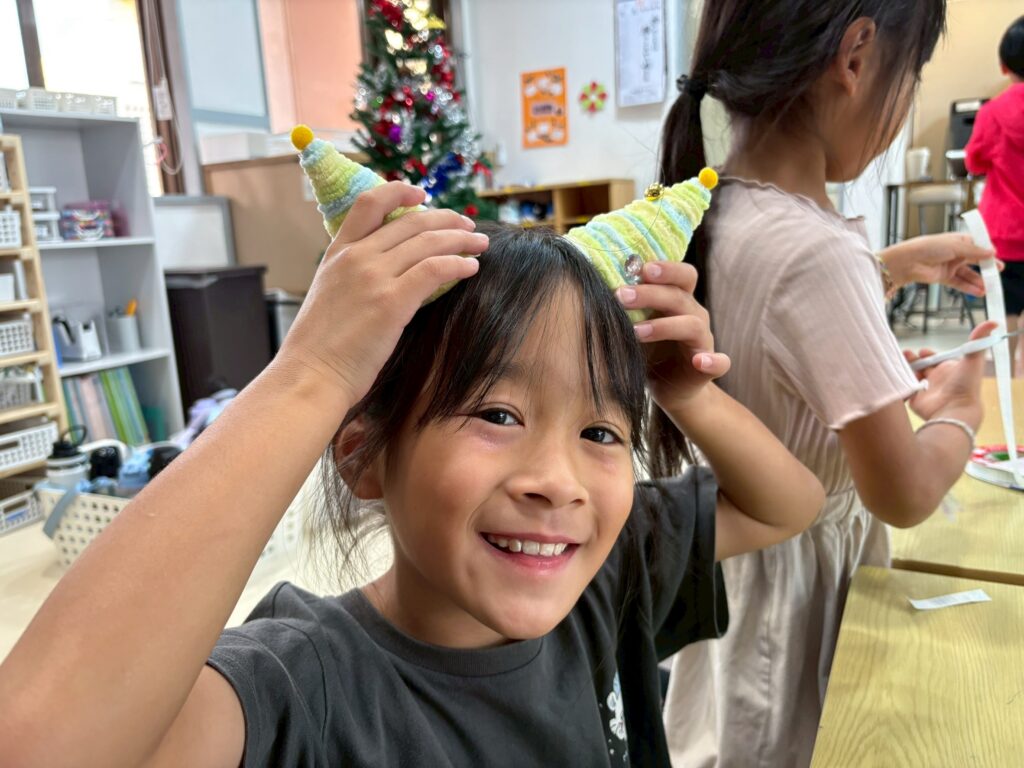 ツリーを二つ作って耳にしたり、ツリーに紐をつけて小さい帽子にしたりする子もいました!