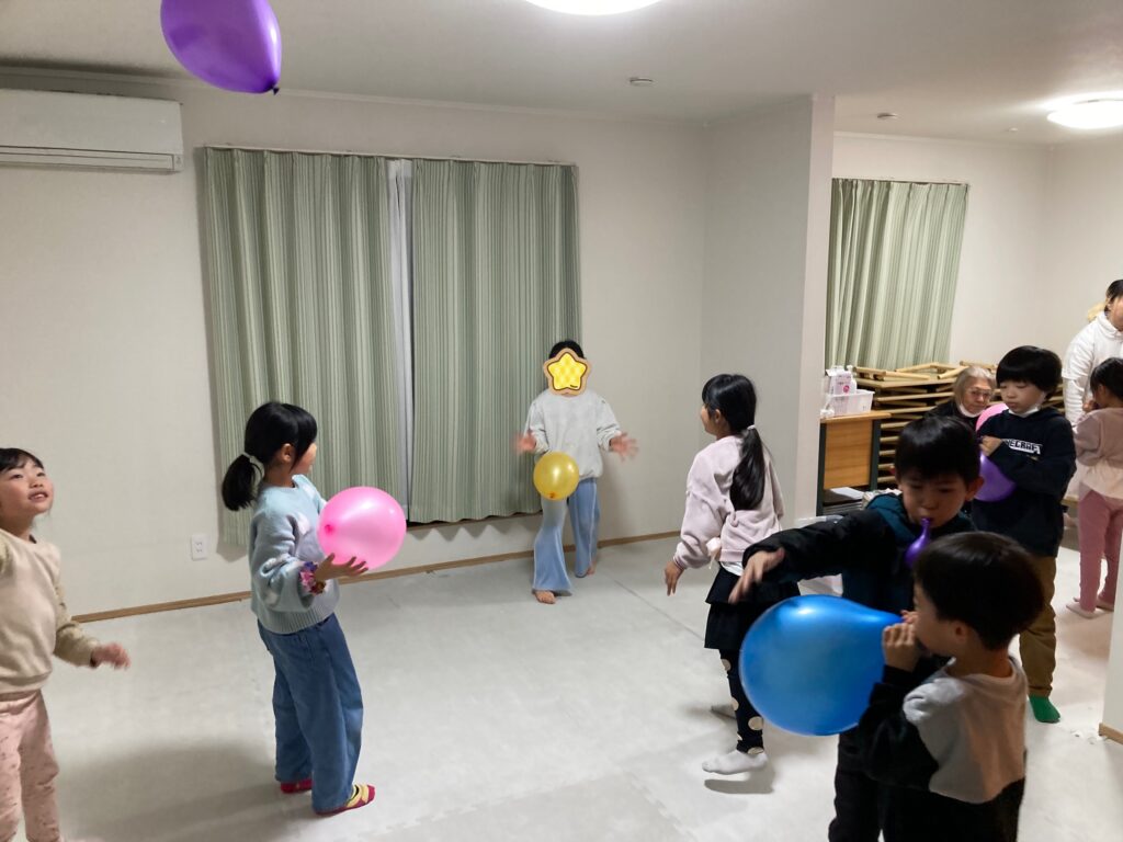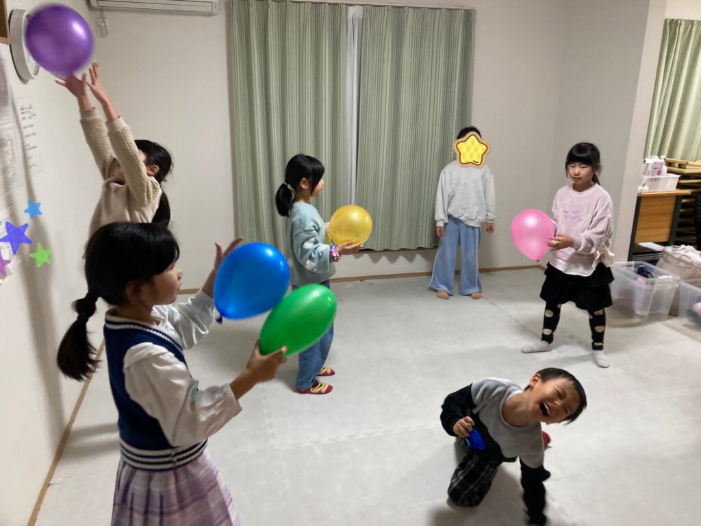 1人でポンポンしたり風船バレーをして盛り上がっています( ´ ▽ ` )ノ
