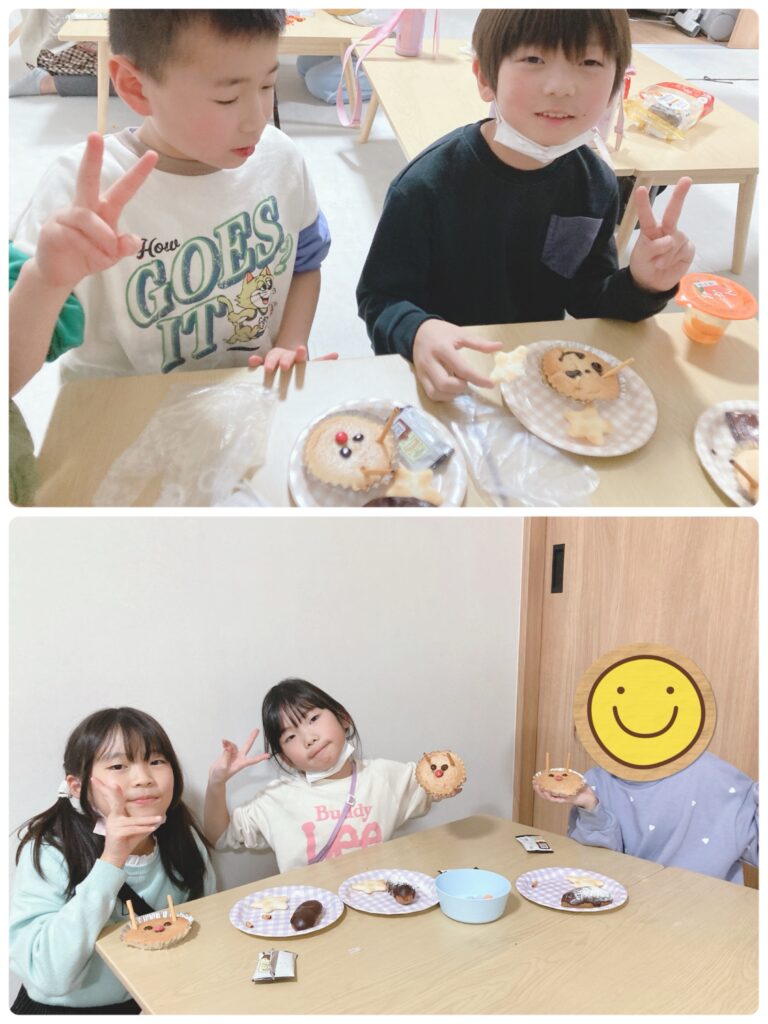オーブンで焼き、完成したマフィンにトッポとチョコペンでデコレーションしトナカイにしていきます🤗