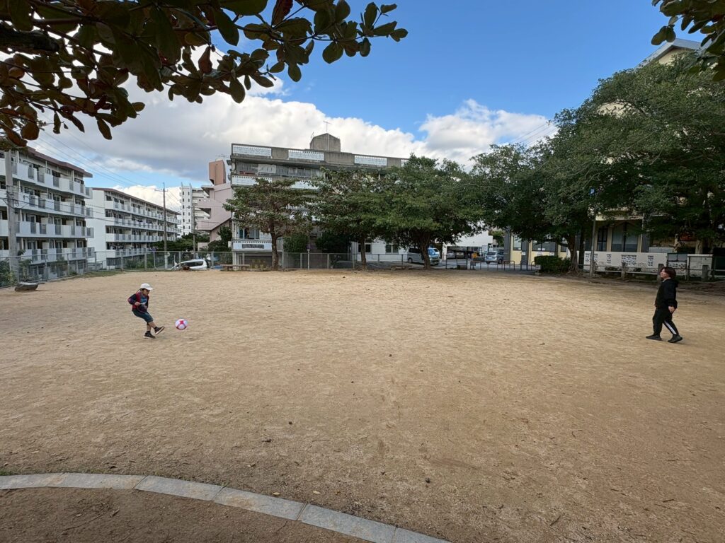 新しいサッカーボールで先生とサッカー!遠くまでパスできていました⚽️