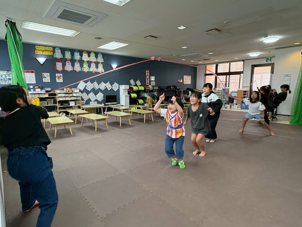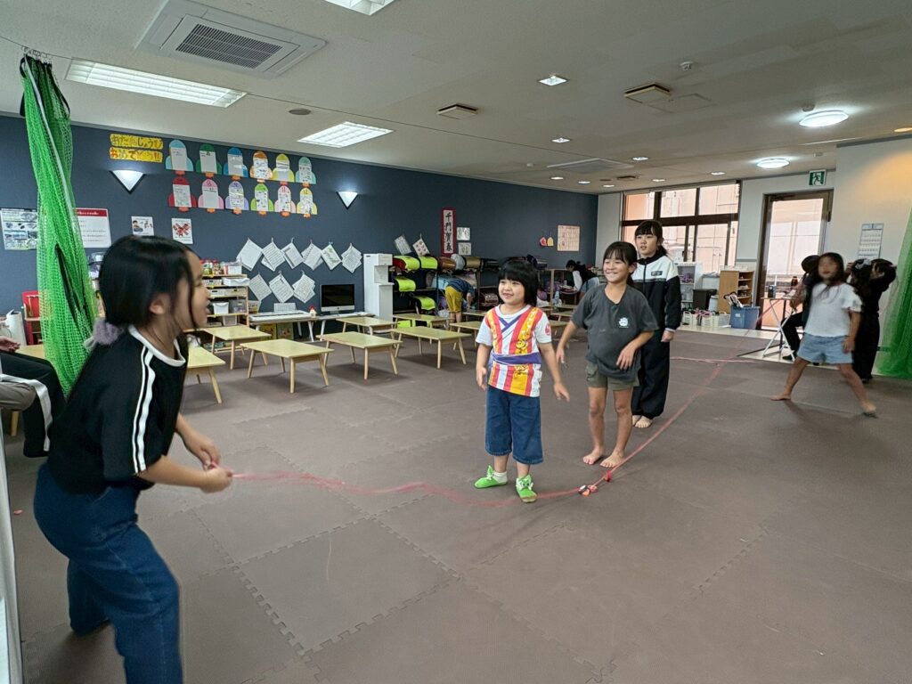 みんなで大縄跳びをしていました!何回飛べたかな??