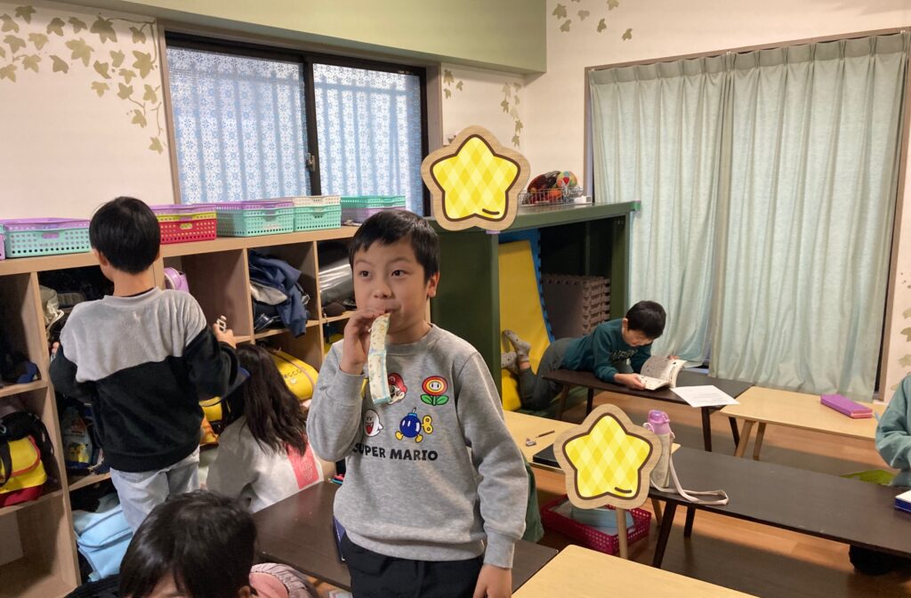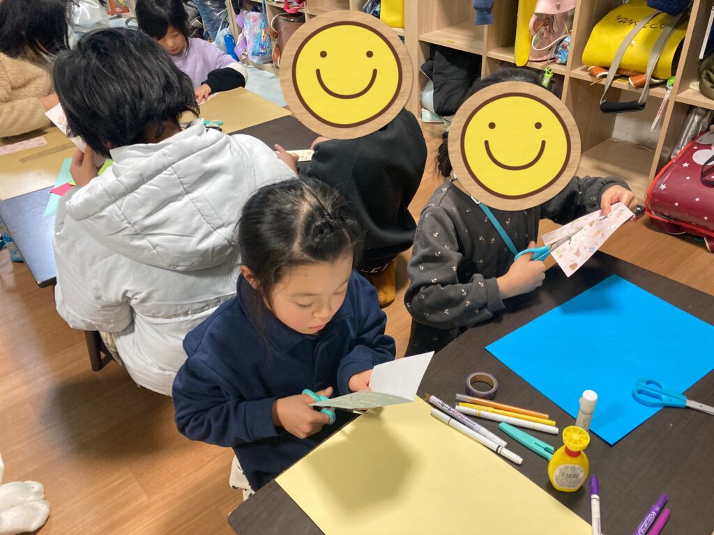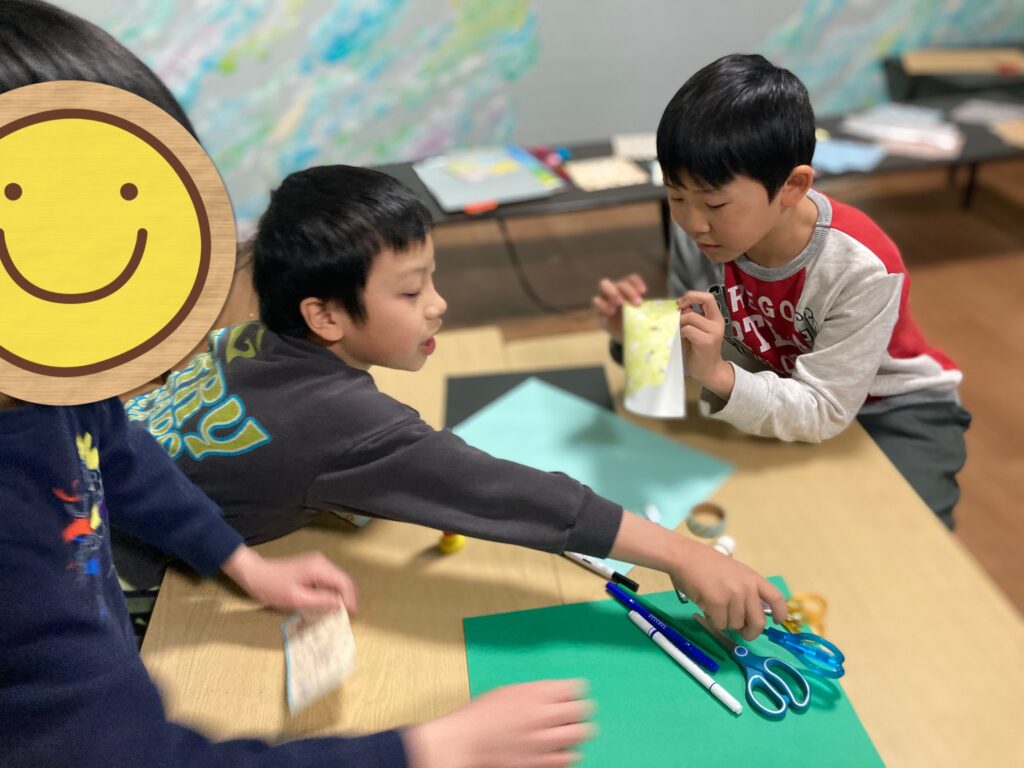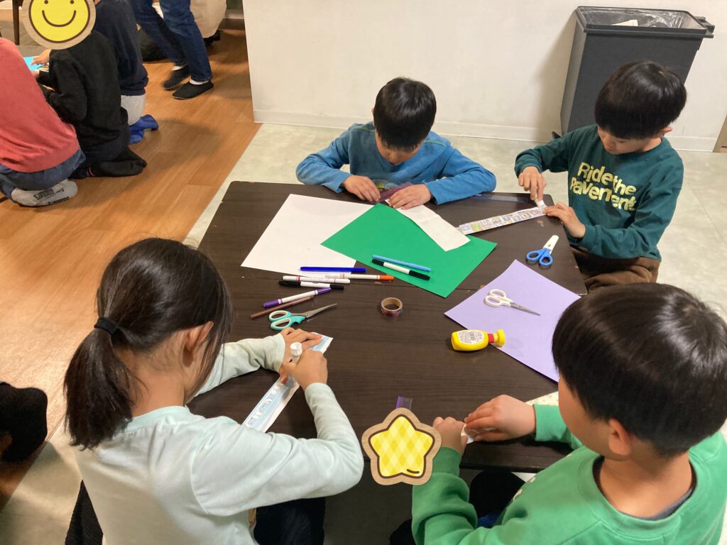 こちらの工作は紙を巻いた後、1日以上寝かせないと完成しないので持ち帰りは後日になりましたが、みんな一生懸命作っていました!