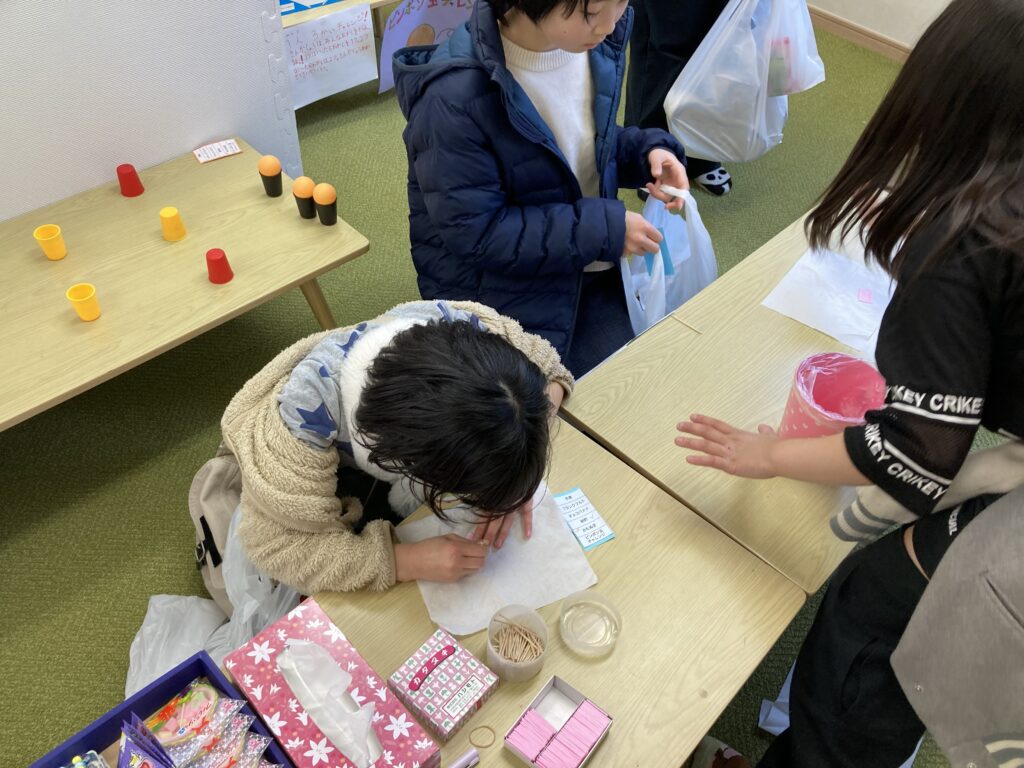 2階ではピンポン玉入れゲームコーナーと