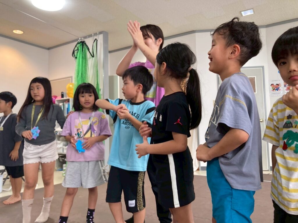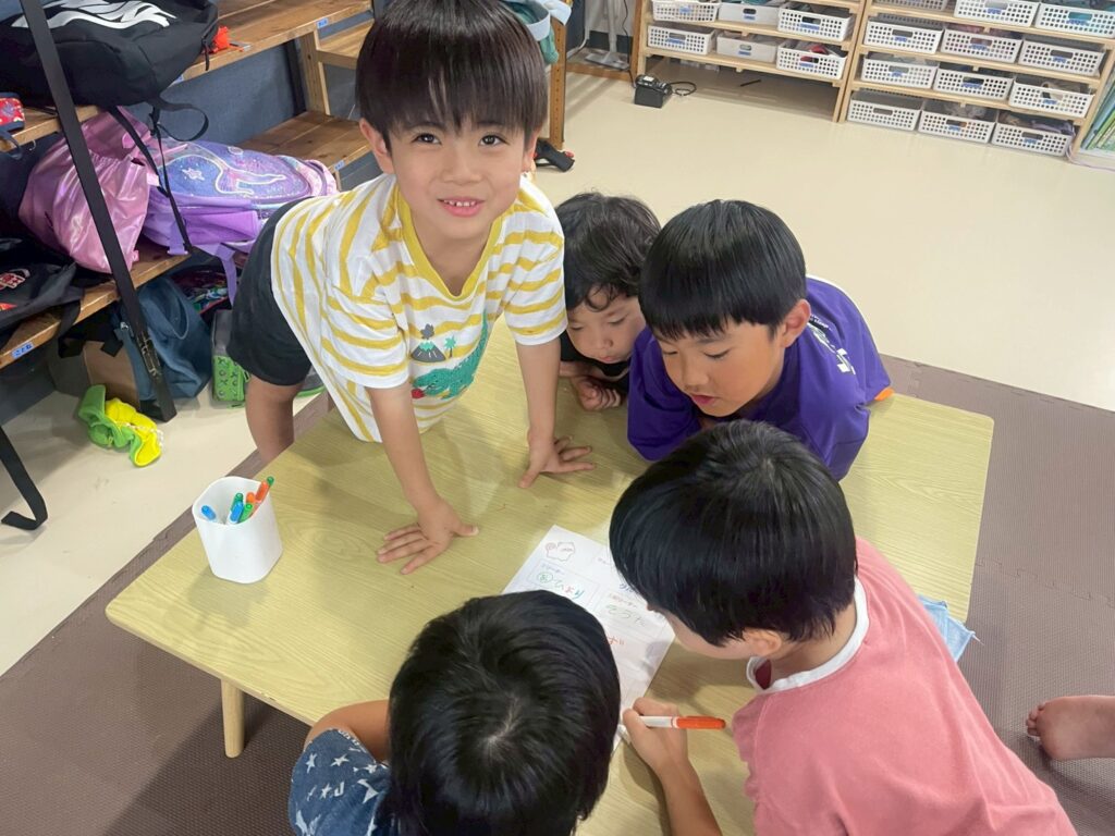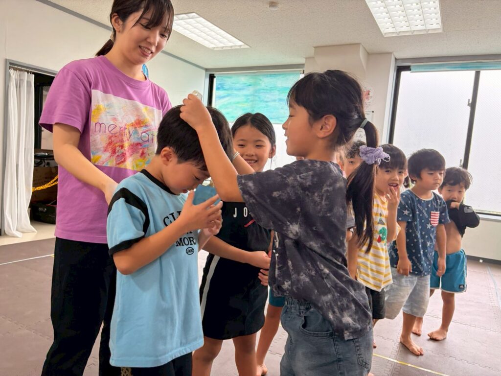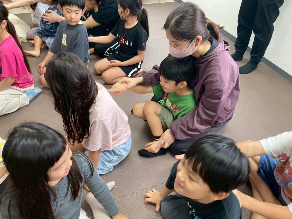 力を合わせて、先生から預かった大事なメッセージを伝え合うゲームを楽しみました☆