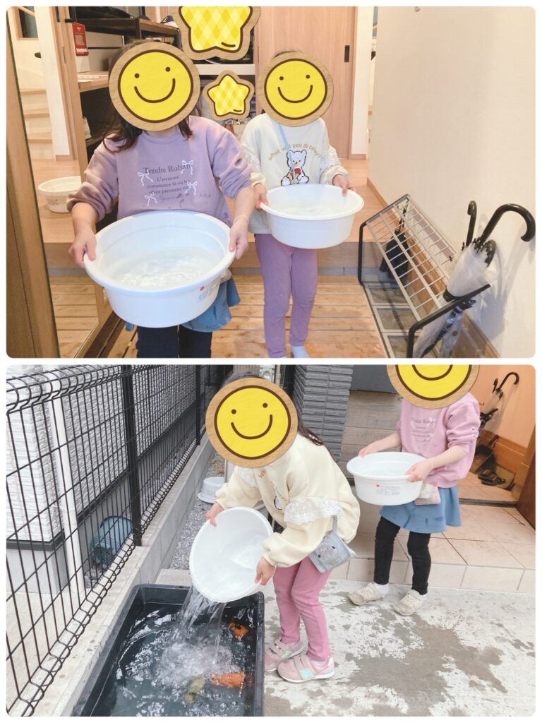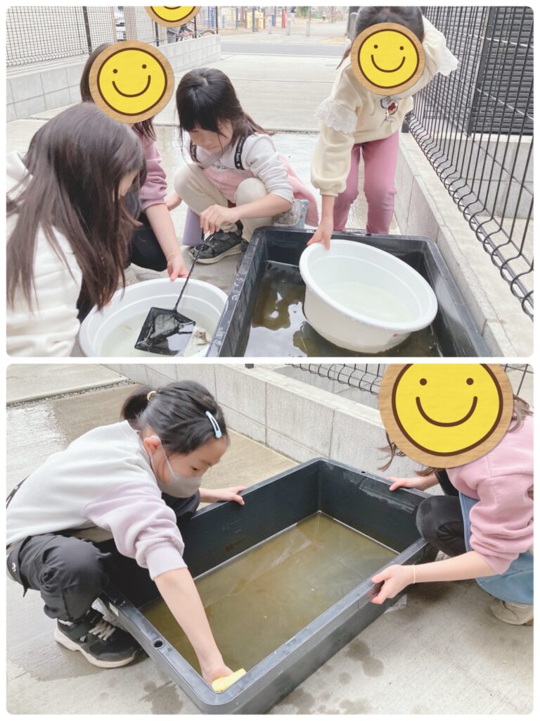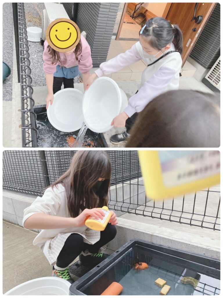 希望した子達でメダカの水槽の掃除をやってくれました♪