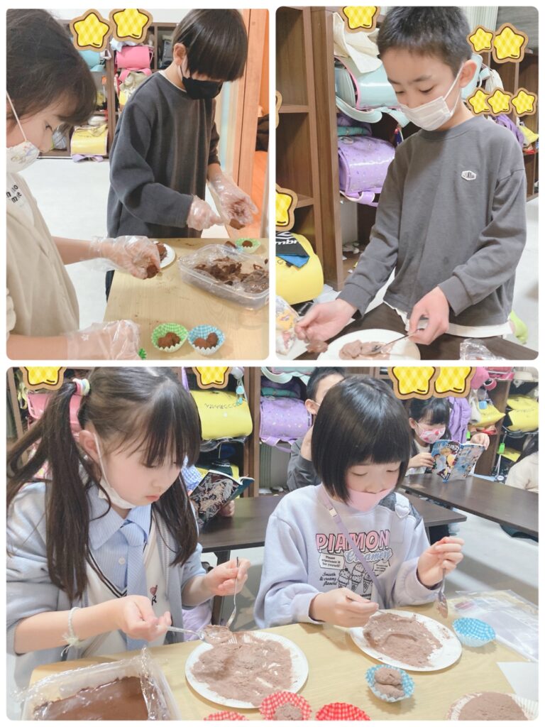 チョコの生地が全く固まらず、ほとんどの子が出来ない事態になってしまったのです😓