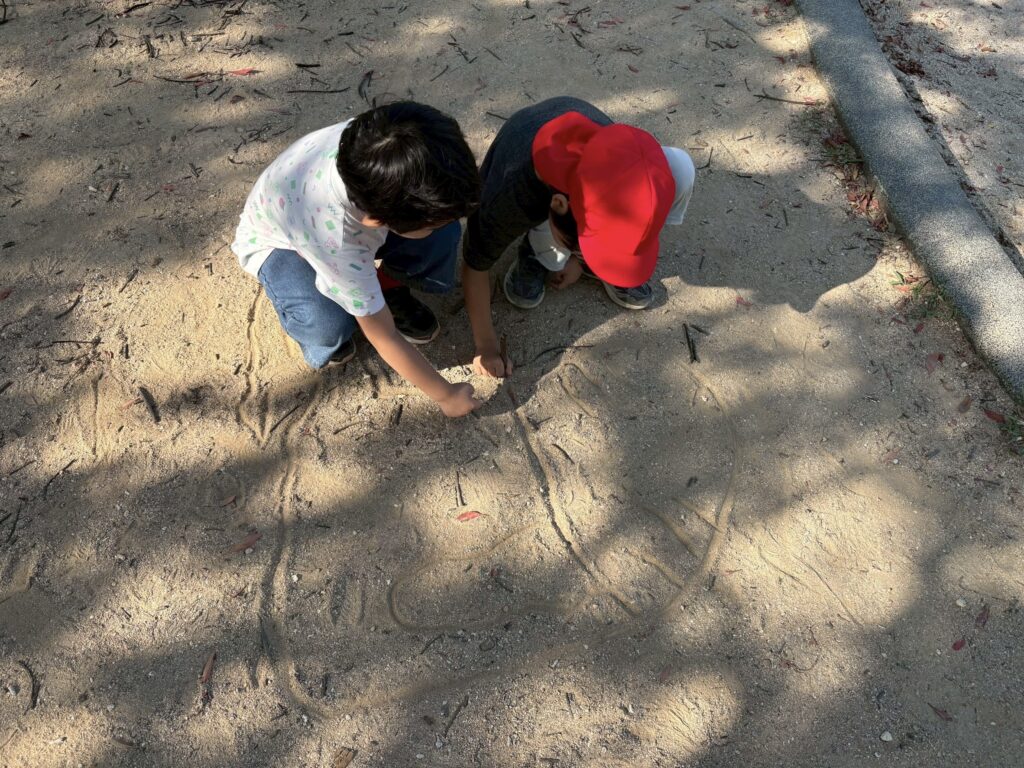仲良く砂場でお絵描き👩🏻‍🎨何を絵描いてるんだろう!?