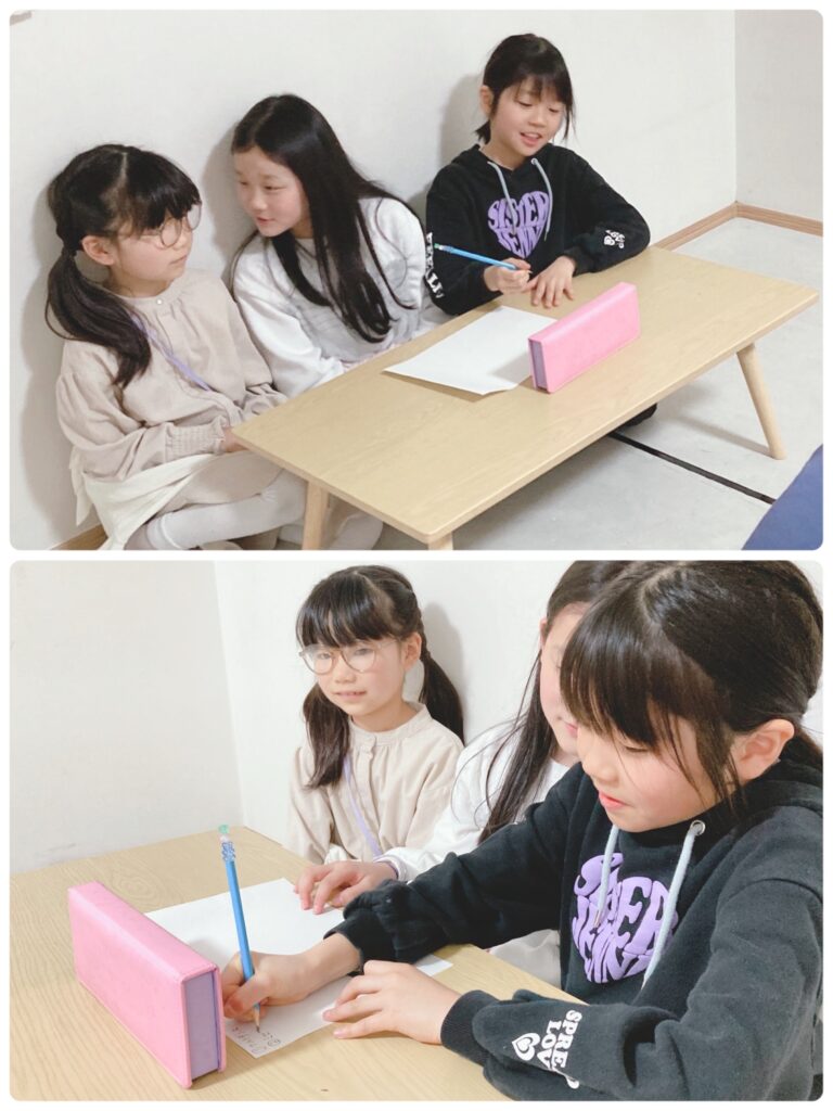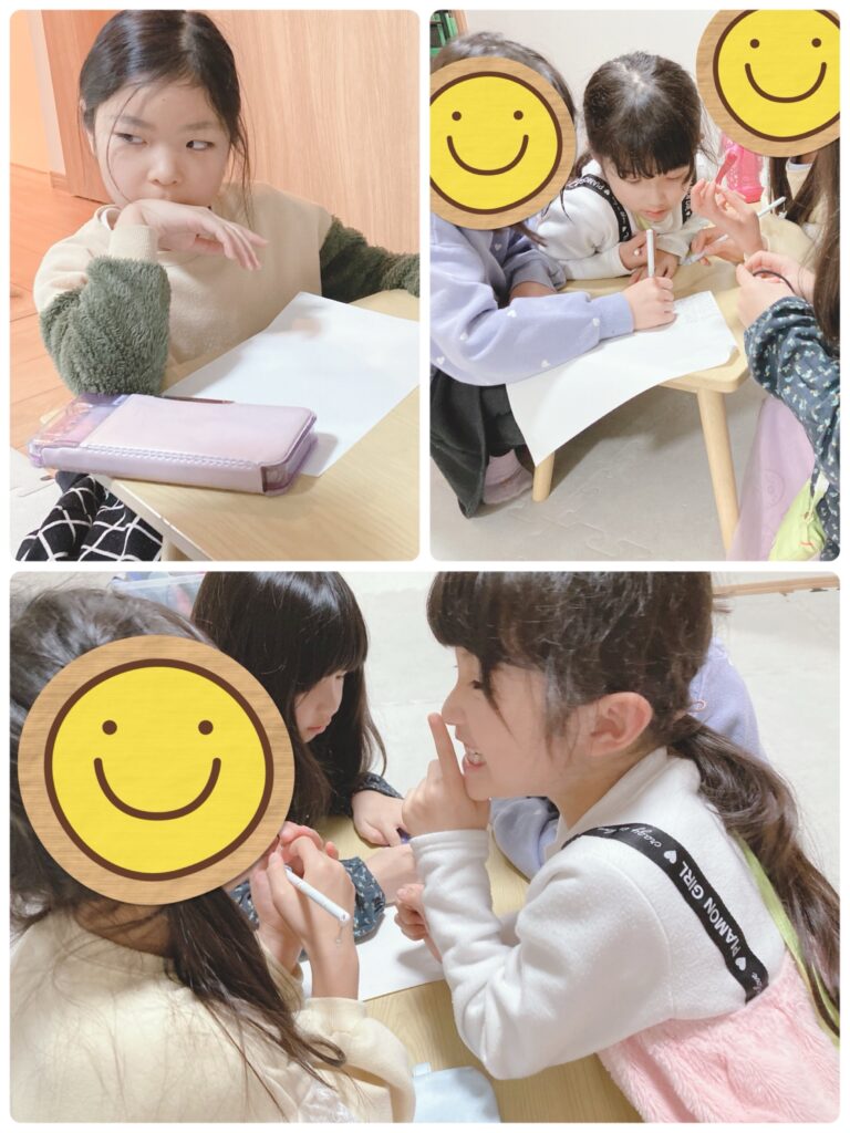 (下)他のグループに答えが聞こえないようにしてシーってやっています(笑)