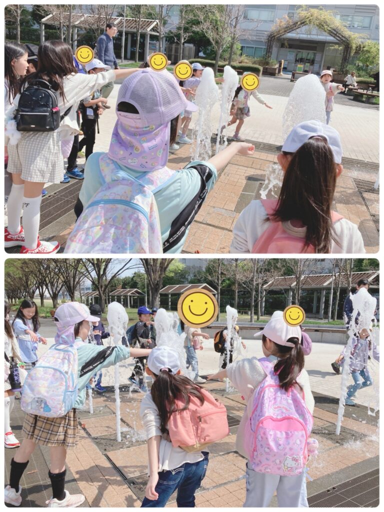 地面から水が出てきて、子ども達は大はしゃぎ!