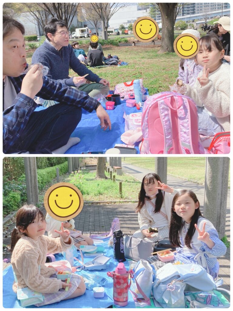青空の下で食べるお弁当はとても美味しそうです♫