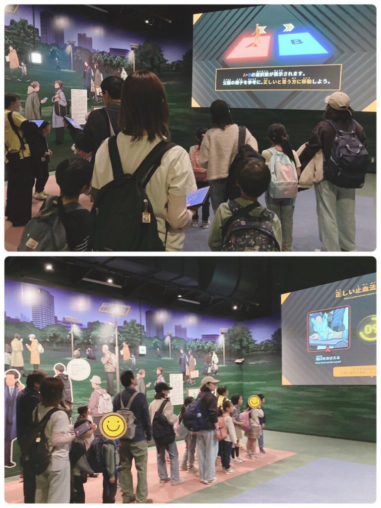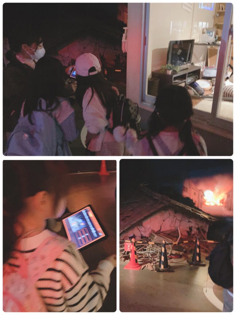 そして災害現場を再現した場所でタブレットに出るクイズに答えながら避難していく流れです。